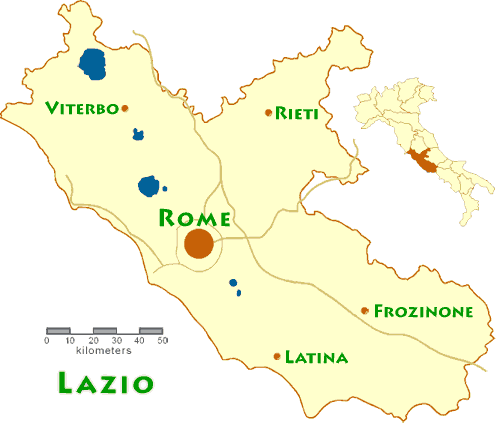 Lazio Italy Map . Rome Is More Or Less In The Middle Of The Region But Lazio Has Numerous Other Attractions And Would Well Repay A Visit Even If Rome Did Not Exist.