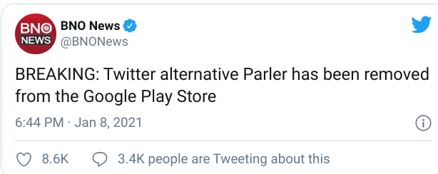 Parler Shut Down , Parler Saw Approximately 210,000 Installs Globally On Friday 1/8, Up 281% From Approximately 55,000 On 1/7, According To Data From The Analytics Service Sensor Tower.